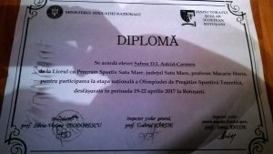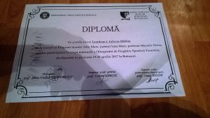 „Anul acesta școlar am participat la Olimpiada de Pregătire Sportivă Teoretică, faza județeană, desfășurată în luna martie la Liceul cu Program Sportiv Satu Mare și m-am calificat să reprezint județul nostru la clasa a X-a, la faza națională.